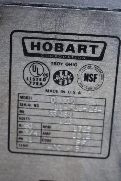 This used Hobart D300 mixer is in very good cosmetic and working condition with minor scratches and dents.