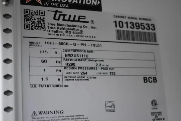 This used True TSCI-600R-G reach-in refrigerator is in very good cosmetic and working condition with minor scratches and dents.