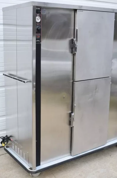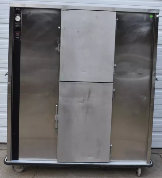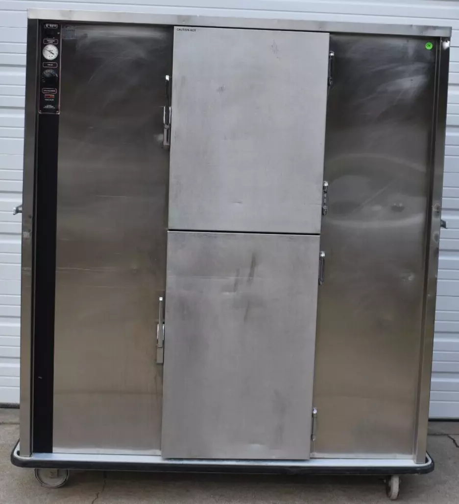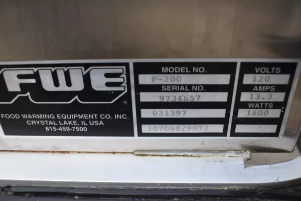 This used FWE P-200 200 plate heated banquet cabinet is in good cosmetic and working condition with minor sratches and dents.