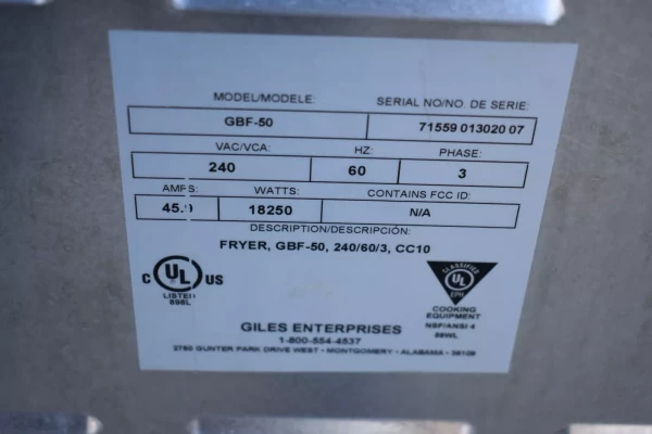 This used Giles GBF-50 electric fryer is in very good cosmetic and working condition.