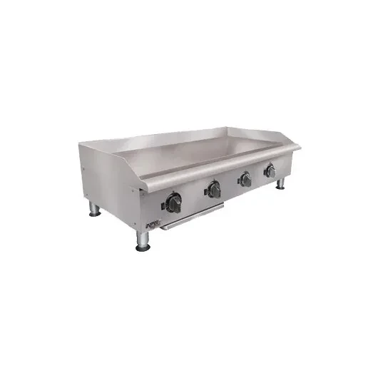 The EG-48i is a 48" wide, Champion series electric countertop griddle from APW Wyott with a 1" thick smooth polished steel plate and thermostatic controls. The griddle has a 48" wide x 19-1/2" deep cooking surface that will get as hot as 450 degrees F and heats up quickly, rearching 350 degrees F in 11 minutes.