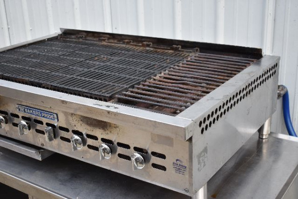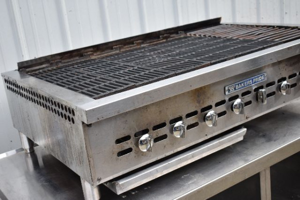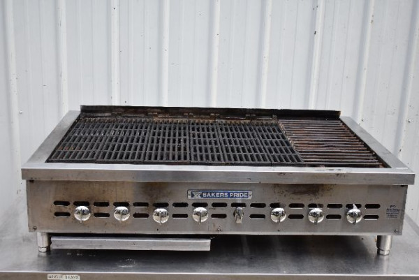This used Vulcan Bakers Pride XX-8 natural gas charbroilers is in good cosmetic and working condition.